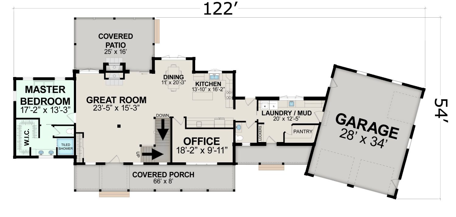 The Golden Eagle Log and Timber Homes - Farmhouse Log Cabin Floor Plan embodies rustic charm and modern comfort in perfect harmony. This thoughtfully designed log or timber home offers a spacious and open living area, complete with a vaulted ceiling that accentuates the grandeur of the space. The main level seamlessly connects the kitchen, dining, and living areas, creating an inviting atmosphere for gatherings. The loft above offers additional flexibility for bedrooms or a cozy relaxation space. The home's exterior can be traditional log construction or timber frame style, evoking a sense of timelessness, and the covered porch provides an idyllic spot to enjoy the surrounding natural beauty. With its blend of classic log aesthetics and contemporary functionality, the Farmhouse floor plan from Golden Eagle Log and Timber Homes promises an exceptional living experience in a captivating setting.