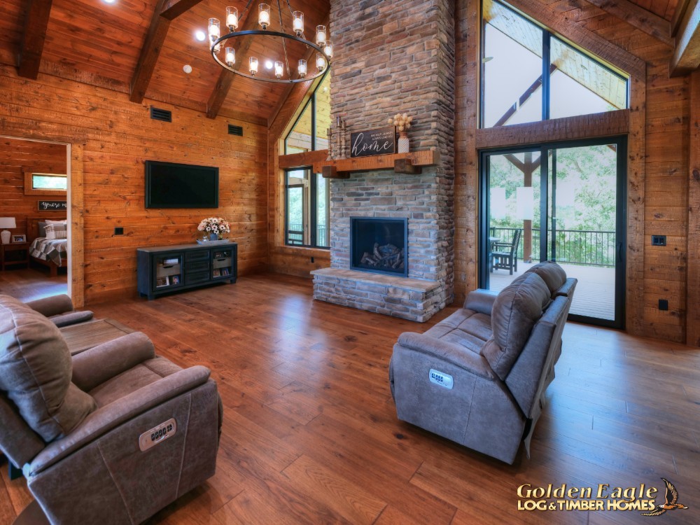 This stunning home was thoughtfully designed to reflect the homeowner's unique preferences and lifestyle. Like every Log Home or Timber Home we build, it was fully customized to meet their specific wants and needs. The best part? You can personalize this Log Home or Timber Home to suit your own vision too. Our versatile floorplans are available in all log styles — including round logs, square timbers, or a beautiful combination of both logs and timbers. Whether you're dreaming of a rustic Log Home retreat or a modern Timber Frame Home masterpiece, we're here to bring your ideas to life. Give us a call today to discuss your vision, and we'll quickly provide a ballpark price tailored to your custom Log or Timber Home design.